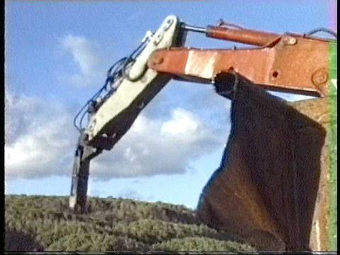 There's a 4 1/2 minute mpeg of this activity, BTW. This is how the action looked anyway. The big dinosaur thingee would just rip the next piece of track off its sleepers, and swing it up and around ... |