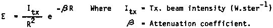 Provided the distance is large compared with the diameter of the transmitter lens (or mirror), the illumination (E) produced by the beam at a distance R is given by;