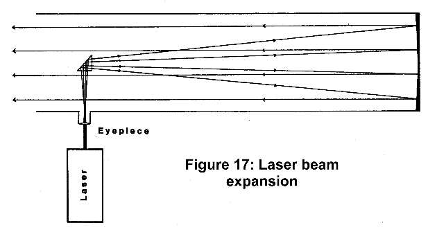 The parallel beam of light emitted by a laser will start to diverge after a short distance as a result of diffraction, but this can be reduced by expanding the beam through an astronomical telescope as depicted in Figure 17: