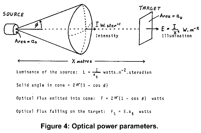 Because light sources have a finite size and do not radiate equally in all directions, four parameters (see Figure 4), are used to describe optical brightness and intensity. These are;