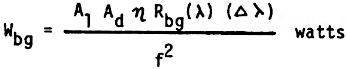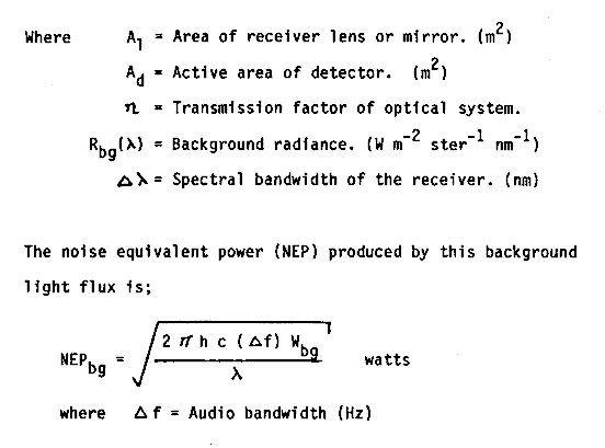 3. Full noon sun. Lbg = 50 W m-2 ster-lFor other weather or lighting conditions, the detector flux and noise power can be estimated as follows;