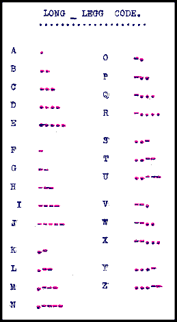 During these antenna-raising sessions, Rowland Legg and I found that we could see each other's homes from vantage points on our rooves. In an attempt to set up a signalling system, we spent many evenings up ladders with kerosene lanterns, using a black card to cut off the light and send messages to each other in Morse code. The standard Morse alphabet seemed rather complex, so Row devised one of his own, following a logical mathematical progression: