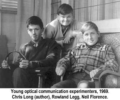 Author's note, 28 April 2005: As this page deals with my own modulated light experiments I hope readers will tolerate these reminiscences before I reproduce my 1979 article on the subject from 'Amateur Radio' magazine: