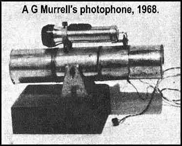 Soon afterwards, a Mr A G Murrell of Penola, South Australia, published the details of his simple 'photophone' in the 'A Reader Built It' page of March 1969's 'Electronics Australia' (pps. 91-93). The project's simplicity made it an attractive proposition for young people, and many Australian experimenters of my generation will remember it: