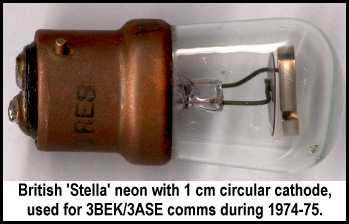 I initially wired a neon lamp into the anode circuit of a Philips battery triode from the 1920s, type B406. The orangey-pink glow around the cathode on these neons is reasonably intense, though it doesn't even approach the intensity of modern LEDs or lasers. After setting up the neon modulator I was rewarded with near perfect audio from my OCP71 for the first time. Fortunately, a parental veto on building mains-fed power supplies ended on my fifteenth birthday (8 March 1969), so the required 300 volt rail was no problem.