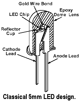 Indicator-type LED's, commercially produced with Gallium Arsenide Phosphide chips since 1968, were always limited to a dissipation of 100mW or less by their design. Their epoxy encapsulant couldn't withstand temperatures above 120° C, and the wire leads couldn't dissipate the excess heat generated by the chip:
