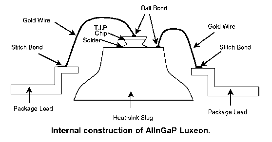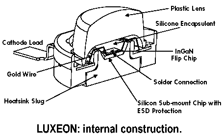 Lumileds Application Brief AB25: 'Luxeon Reliability', pub: Lumileds Lighting, San Jose, USA, February 2004. Contains a detailed explanation of the internal differences between the various Luxeon chip designs.