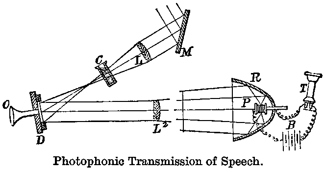 With receivers employing selenium photoconductive cells, ranges of about 700 feet were spanned by this 'photophone' system. With improved mechanical light modulators and an electric light source, A O Rankine demonstrated a system with a range of several miles in 1916.