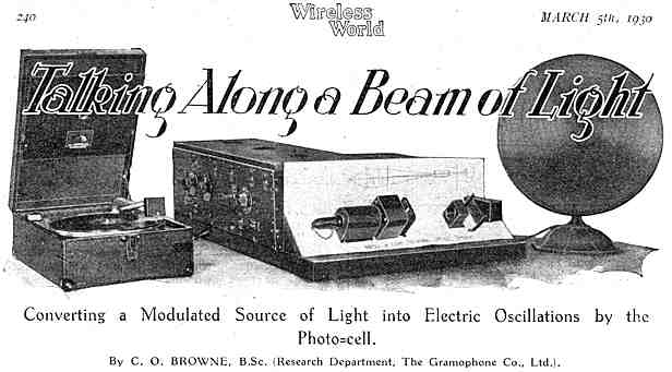 From time to time over the last eighty years, enthusiasts' radio magazines have published articles on modulated light communications, though few have involved equipment capable of ranges comparable with radio. A typical example from 'Wireless World' in 1930 is shown below: