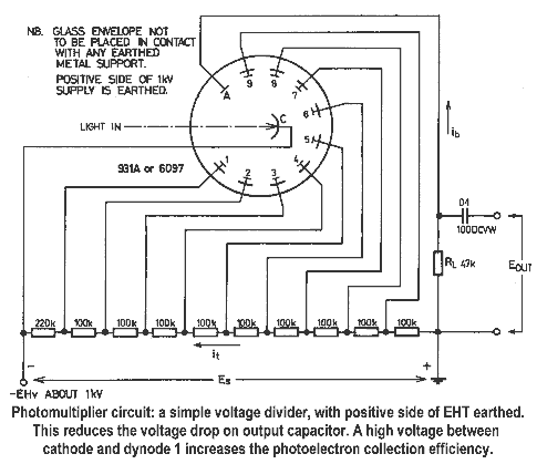 In spite of advances in semiconductor light detection technology, the photomultiplier is still an attractive device for the detection of weak visible light signals at room temperature. It is particularly useful at the violet end of the spectrum, between 350 and 500 nm.