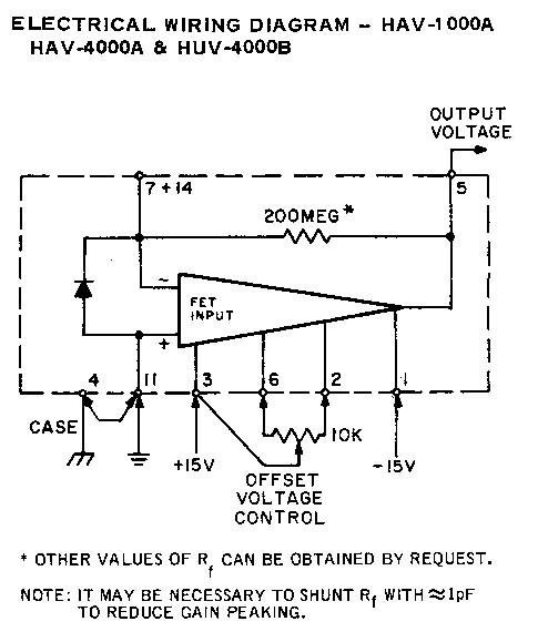 In applications involving large area photodiodes, the amplifier input noise voltage generator is the major if not the sole contributor to the total output noise voltage. It is, therefore, important in these applications to select an operational amplifier that has a minimum value of input noise voltage. Conversely, in applications involving small area photodiodes, the optimum noise performance is obtained with an operational amplifier having a very low value associated with the input noise current generator.The dynamic range of an operational amplifier/photodiode combination is limited at the high end of the range by the permissible output voltage swing of the amplifier. Generally, the maximum unsaturated rms output voltage of an operational amplifier is limited to 10 volts. The low end of the dynamic range is limited by the total rms noise voltage produced at the amplifier output by the non-coherent summation of the individual noise sources. Further, when determining the noise voltage, it is important to consider the effects of the system noise effective bandwidth on the total noise voltage because the magnitude of the noise voltage follows as the square root of the noise effective bandwidth.
