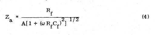 The open-loop gain of most commercially available operational amplifiers is flat from DC to approximately 10 Hz and frequency compensated to decay at a rate of 6 dB per octave at frequencies greater than 10 Hz. At high operating frequencies, this gain-frequency characteristic increases the value of (Za) and decreases the value of transimpedance as defined in equation 5: