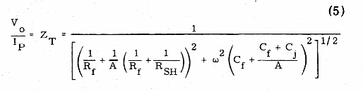 With the availability of open-loop amplifier gains that exceed 105 at DC it is evident that photodiode signal gain can be accomplished over a reasonable frequency range without the loss of response linearity. A very good approximation of photodiode/operational amplifier response linearity can be determined by the substitution of (Za) for RL in equation 1.