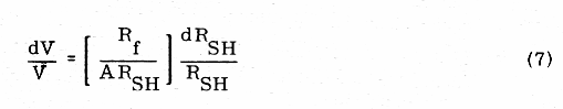 The DC offset voltage present at the output terminals of a PV photodiode/op-amp combination is a function of feedback and shunt resistance values. The change in offset voltage as a function of a change in shunt resistance is defined in equation 7: